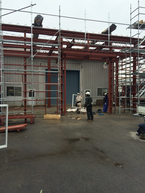 悪天候の続く中、上棟